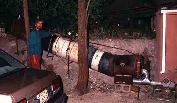 Souleheater1 We used to be some old oildrums. Then David Soule from Jerome, Arizona turned us not into a cannon but into a hot water heater for his hot tub. This is the lower part where a fan blows air through a pile of burning wood.