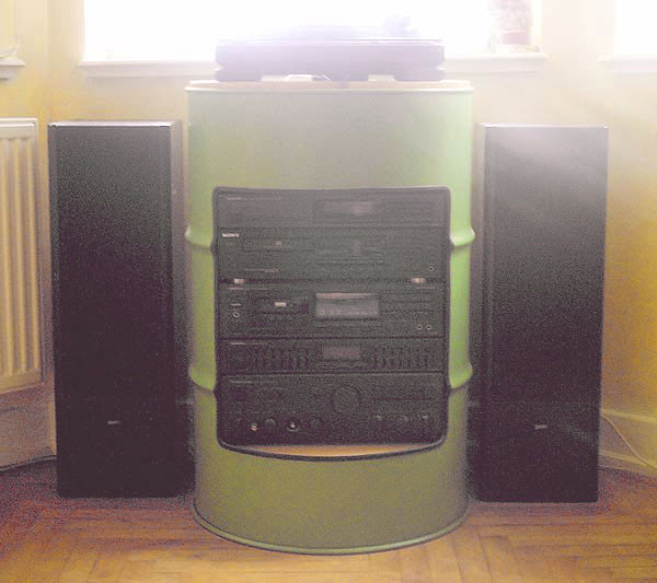 Stereo "Endlich hat mein Freund Stephan Mix vom Lake de Constanza in Germany seine selbstgebaute intereur design musikanlage in Oiltonne fotographiert." Mirko