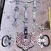 In 1991, I was working in Ecuador for the Swiss foreign aid agency "SWISSCONTACT" teaching blacksmithing classes. In the town of Cuenca, I got introduced to a man by the name of Manuel Guerra who was making chestlocks, doorlocks, padlocks and other hardware in a tradition carried on from medieval times. I fell in love with his work and actually asked myself what I was doing, teaching forgework in a place that had its own longstanding tradition. But such is the irony of life, and while I continued giving my evening classes, Manuel allowed me to come in during the days and work with him. He taught me the making of a padlock similar to the one shown above.