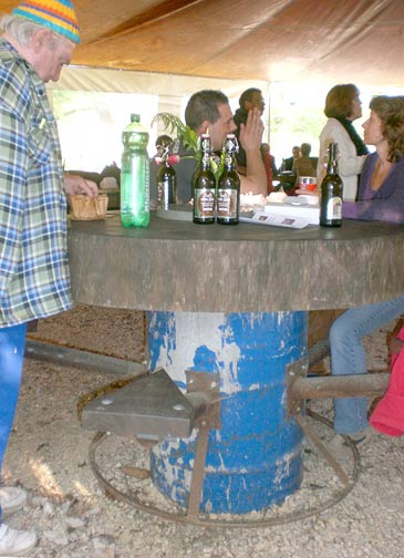 Barstool Beim Skulpturen-comunity-park in der Schweiz in Steinmaur: Tischunterbau, gefuellt mit Beton, so dass die Sitze rangeduebelt werden koennen und auch bei fortgeschrittener Stunde alles stabil am Ort bleibt. (Mirko Siakkou-Flodin)